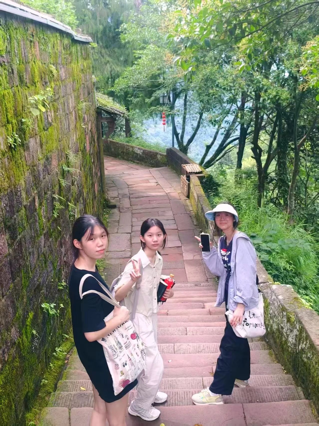 6月26日,同学们赴"江南第一名山"齐云山开展高山写生实践。沿着蜿蜒的丹霞步道攀登,云雾忽而散开,露出层叠的峰峦与苍翠林海,当阳光穿透云层照亮摩崖石刻时,同学们对“外师造化,中得心源”有了更深的理解。艺术的活力,源于祖国河山的滋养;文化的传承,流淌在青年人的满腔热血中。