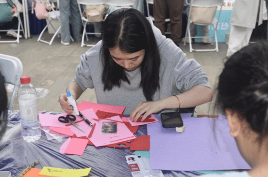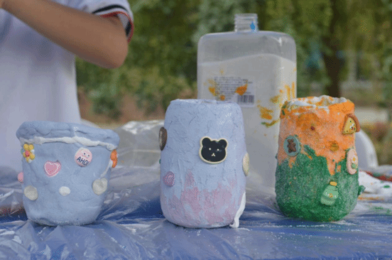 在“智启桂子山,艺铸生态梦”艺术科技--互动体验市集上,观摩讲解、实践互动、作品展示等精彩活动轮番上演。专业讲解员在观摩讲解区对艺术科技互动装置进行详细讲解,通过简单易懂的语言将专业设备和艺术内涵传达给参观者,让参观者更加快速地了解互动设置的科学原理和美学价值。同学们纷纷亲自动手制作“一半人为,一半天成”的非遗漆扇,将废纸杯、毛线球、粘土变成了宝石花瓶、纸杯花篮......不仅提升了自身的艺术素养,还将环保意识内化于心、外化于行。