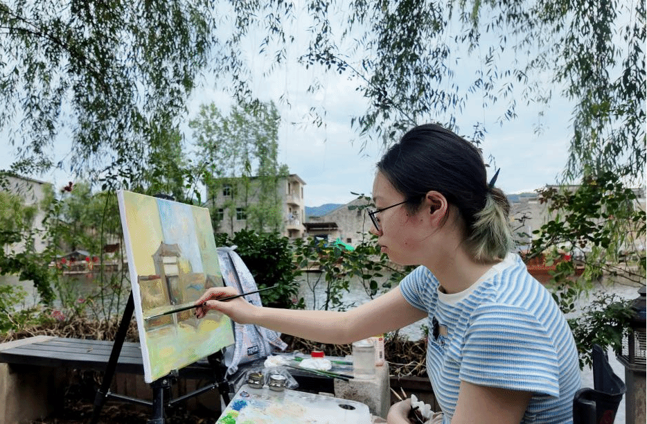 在安徽省黄山市黟县,实践队深入走访特色徽州古村落,感受徽派建筑百余年来的传承与发展,探寻艺术融入传统村落保护的新路径。实践队员们充分发挥自身专业特长,用画笔积极宣扬乡村新貌,挖掘徽派艺术的独特魅力,创作近千幅水彩、油画、素描等作品,绘制了新时代乡村振兴的壮美画卷。队员们将“乡村振兴”理念展现于画面,不断探索艺术赋能乡村发展的各种路径,用艺术语言助力乡村振兴。