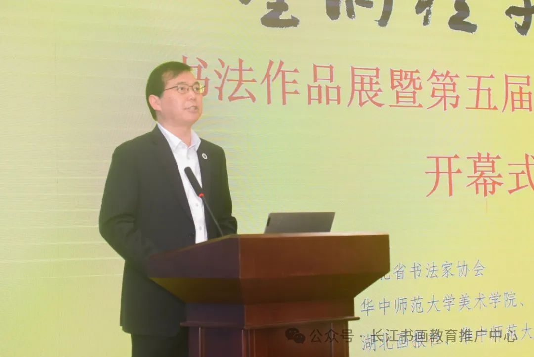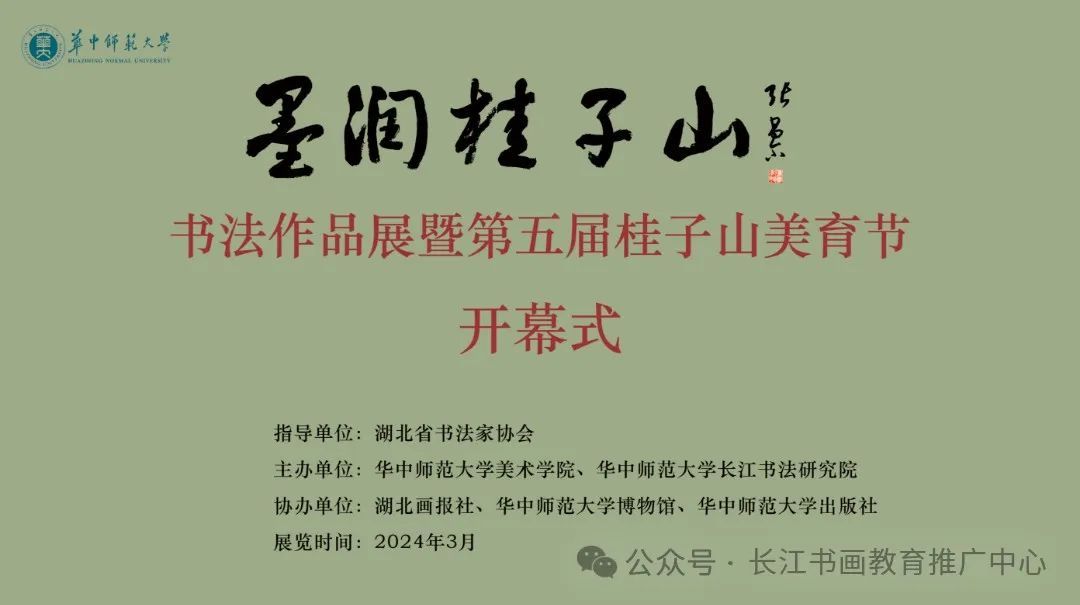 值此举国上下深入学习贯彻习近平文化思想之际,3月29日,由湖北省书协指导,华中师范大学美术学院、华中师范大学长江书法研究院主办,湖北画报社、华中师范大学博物馆、华中师范大学出版社协办的“墨润桂子山书法作品展暨第五届桂子山美育节”开幕式在华中师范大学博物馆隆重举行。