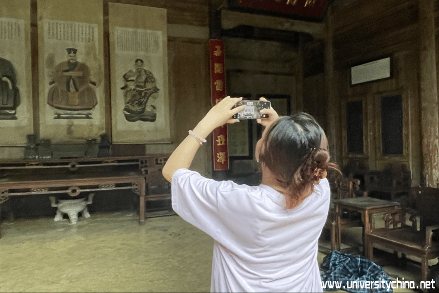 在调研的过程中,实践队员们不仅学会了如何收集素材、捕捉那些能够触动人心的设计元素,还开始思考如何将徽派建筑的精髓融入现代设计之中,让传统与现代在碰撞中融合,在融合中创新,可谓收获颇多。