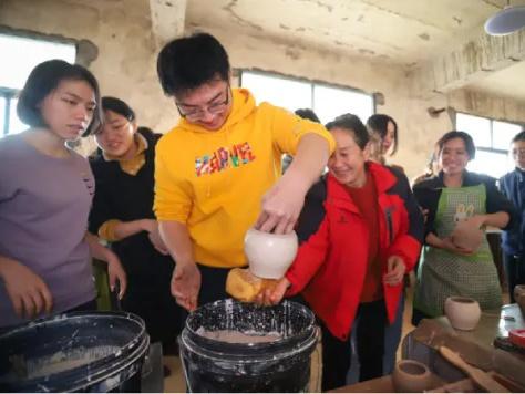 “民窑的土陶为什么能上升为国家级非遗?”到达管窑镇后,杨杨向同学们提出了第一个问题。在杨杨看来,民间美术中蕴含着老百姓们代代相传的深厚“内容”,是历史,也是审美,更是文化。社会实践类课程并不等于游玩,以问题为引导,让学生有目的地参观实践,在与土陶的“亲密接触”中寻找答案。