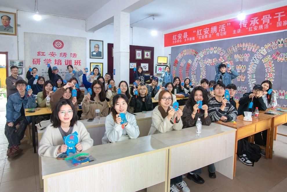 从2021年开设至今,四年来,杨杨带领学生到汉绣博物馆感受湖北传统刺绣艺术的楚风遗韵,到全国首个非遗社区——汉阳江欣苑非遗社区领略非遗艺术的百花齐放,到湖北仙桃学习制作具有千年历史的麦秆画……足迹遍布湖北多地,深入了解并学习制作了多个非遗和湖北民间美术项目。