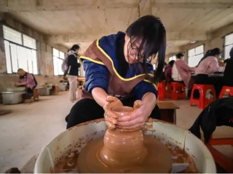 听到同学们的畅所欲言,杨杨倍感欣慰,“民间美术是应用最广的艺术,其中蕴含着浓厚的审美意义。不论是拉坯、绣活,还是做麦秆画,都能让同学们在实践中提升艺术素养和对美的感知能力,体会到民间传统文化的博大精深。”