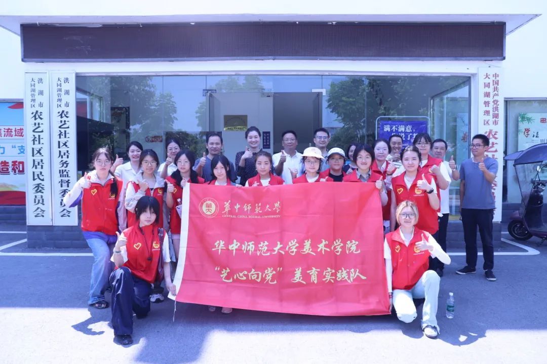 为促进校地合作,助力乡村振兴,7月5日上午,华中师范大学美术学院与洪湖市大同湖管理区社会实践基地签约授牌仪式在大同湖管理区农艺社区党群服务中心顺利举行。团市委、大同湖管理区、华中师范大学美术学院及 “艺心向党” 美育实践队全体队员参与本次活动。