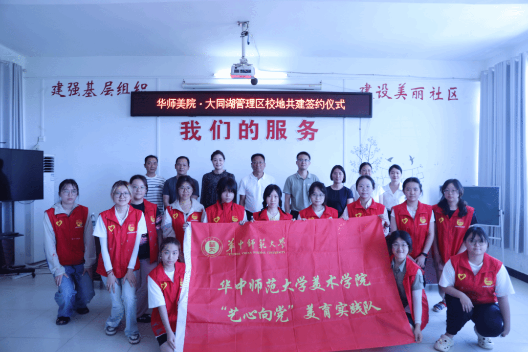 美术学院一直以来高度重视暑期“三下乡”社会实践工作,学院党委书记谢耀辉专程前往实践地看望师生并送上慰问,并与大同湖管理区签署校地共建协议,大学生社会实践基地建成挂牌。实践队带队老师学院团委书记张晓冰表示“艺心向党”美育实践是学院多年来持续打造的社会实践品牌,此次暑期社会实践活动更是实现了“三个结合”:艺术创作与思政教育相结合、专业实践与社会服务相结合、高校资源与地方需求相结合。充分实现艺术赋能美丽乡村建设、校地建设的重要意义。