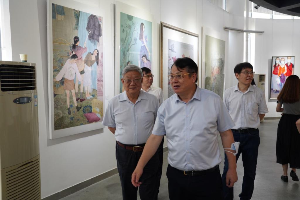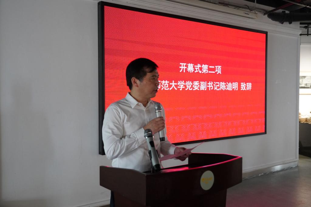 陈迪明在致辞中表示,此次展览以美术作品的形式回顾和展现了党的百年历程,描绘了英雄人物和人民群众的精神风貌,构成恢宏壮观的气势和异彩纷呈的画卷,唱响了中国共产党好、社会主义好、改革开放好、伟大祖国好的时代主旋律。同时展示了华师人紧跟时代步伐、饱含家国情怀的艺术追求。