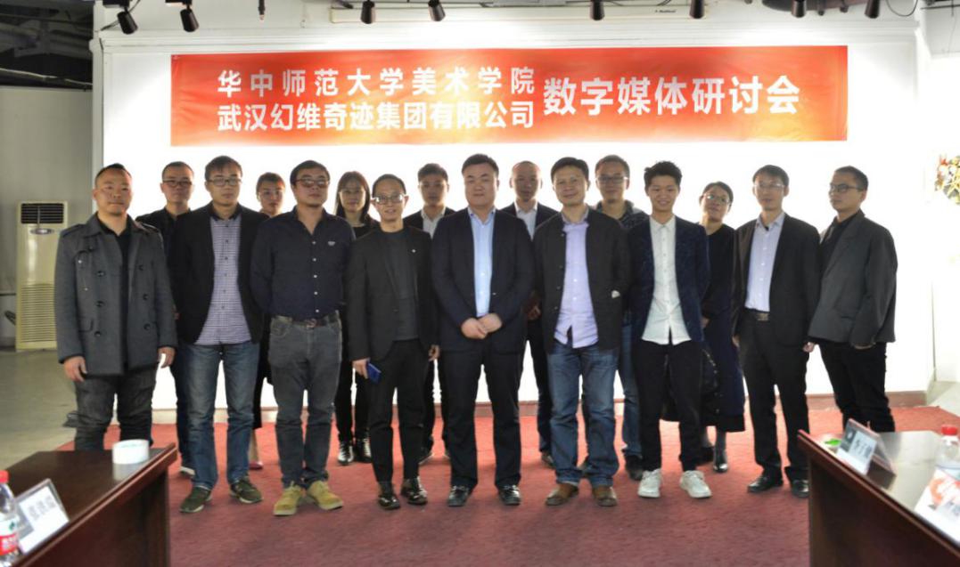 2019年11月15日(星期五)下午4时,我院数字媒体专业师生与幻维奇迹集团有限公司主要技术骨干于华中师范大学博雅美术馆举行数字媒体专业研讨会。出席本次研讨会的双方主要嘉宾有:幻维奇迹集团有限公司董事长王犇、幻维奇迹公司高级工程师何骐鸣,以及幻维奇迹公司重要技术骨干代表,华中师大美术学院出席的代表有环境艺术设计教研室主任魏勇教授、数字媒体设计教研室主任郑达教授、美术学院社会服务部主任肖涛以及美院该专业方向师生群体。
