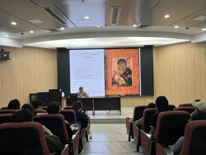 本次讲座紧紧围绕《弗拉基米尔圣母像》这一作品展开,于教授首先从该作品的创作背景、历史文化、风格类型等方面进行分享,使与会人员对本次讲座的内容有更加细致的了解。