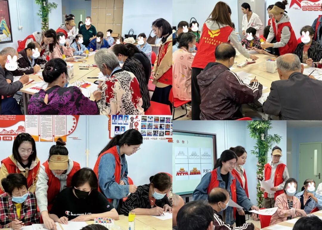 瞬间化解尴尬;另一位阿姨误将和平鸽翅膀涂成“半红半蓝”,正想换纸,志愿者连忙鼓励:
