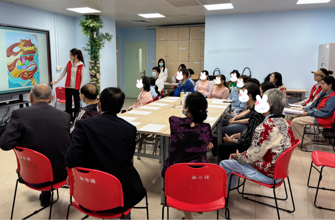 志愿者提前一周筹备:开展专项培训,学习“聊天式引导”技巧并制定活动方案;成立PPT制作小组,以手绘简笔画为配图,从节日由来、历史演变等维度切入,将国庆知识转化为通俗表述。
