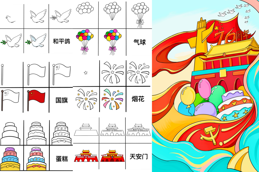 活动伊始,志愿者通过PPT讲解国庆节历史意义与时代内涵,其中包含的绘画示例图很快激发了患者们的灵感。一位阿姨笑着和病友分享: