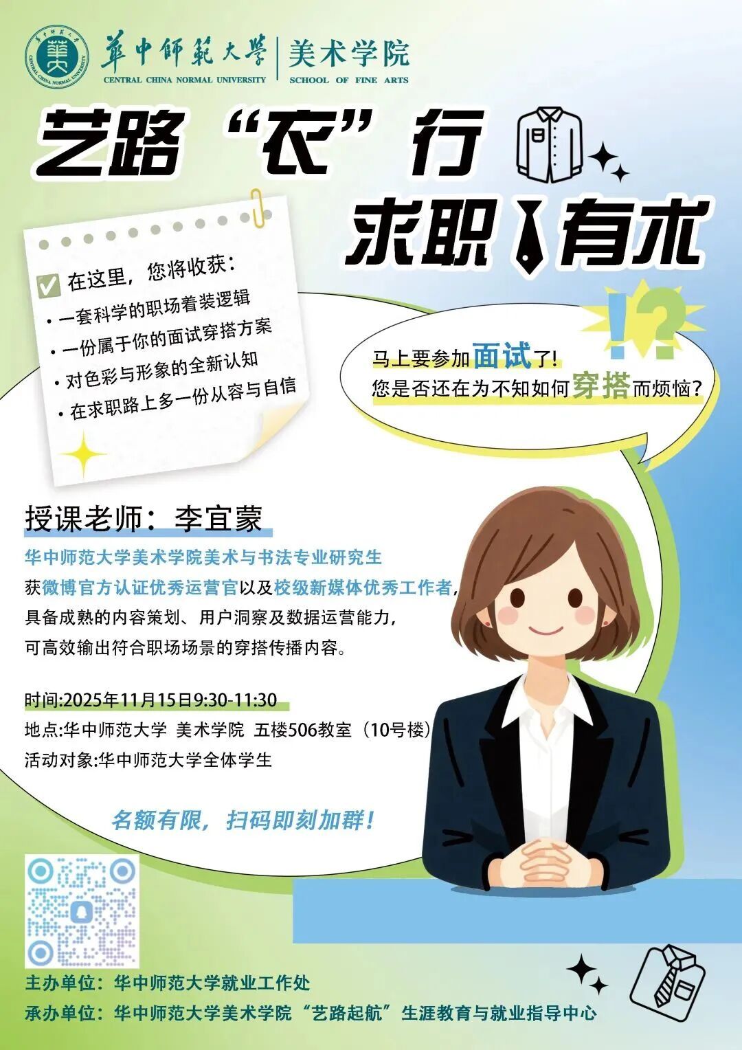 现在,我们将为你量身打造一场专属的求职穿搭工作坊。参加这场工作坊活动可以帮助你找到 “专业与个性平衡” 的穿搭密码,让着装成为你面试中的隐形竞争力。