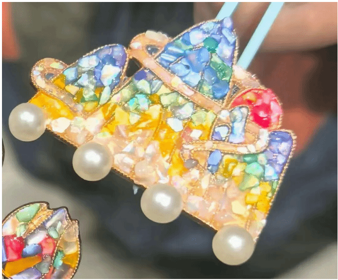 教室里渐渐安静下来,同学们全神贯注,手持镊子,小心翼翼地将各色螺钿片镶嵌在书签、胸针、发簪等木质胎底上。这一过程需要极大的耐心与专注,而正是这种将全部注意力集中于指尖的“正念”状态,让日常的学业压力与焦虑情绪悄然消散。