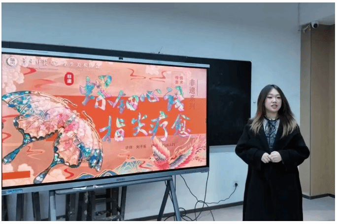 紧接着的知识微讲座环节,主讲人借助精美的PPT,引领同学们踏上一场穿越千年的文化之旅。从商周时期螺钿工艺的萌芽,到唐朝的鼎盛辉煌,再到明清时期在家具、漆器上的广泛应用,螺钿的发展脉络清晰呈现。讲解不仅聚焦于历史,更生动剖析了螺钿工艺的核心魅力:利用贝壳内层珍珠质——即螺钿片,在不同光线角度下呈现变幻莫测、流光溢彩的视觉效果。讲座让参与者在动手前“知其然,更知其所以然”,极大地提升了对这项非遗技艺的敬意与兴趣。