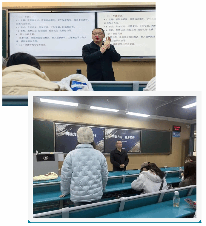 3月26日,23级数字媒体艺术班在教师教育学院A206教室开展主题班会,班主任李子健老师与辅导员陈颖嘉老师共同参加,围绕考研、就业、考公、留学等多元选择,为同学们梳理发展思路、规划成长路径。