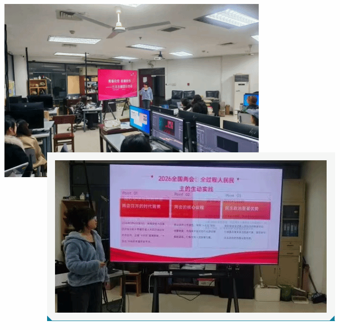 理论学习环节,同学们专题学习2026年全国两会精神,结合专业解读文化事业与艺术人才培养部署;普及禁毒知识,强调实习期间的底线意识;学习民族团结进步促进法,引导以艺术为载体传递民族团结正能量。专业实习交流环节,同学们围绕实习要求、单位选择、技能储备展开讨论,部分同学分享非遗传承、文创开发领域的实习调研经验。活动还设置团日核心知识与专业实习要点知识竞赛,以小组抢答形式巩固学习成果,增强班级与支部凝聚力。