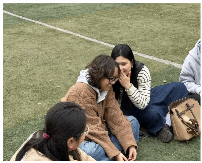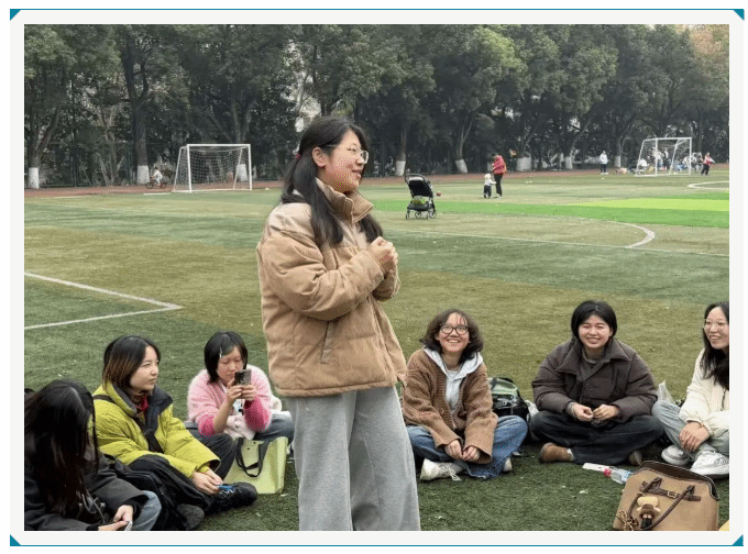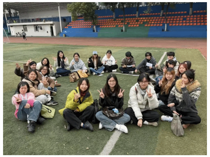 中间比划的同学充分发挥自己的想象力和表现力,他们时而手舞足蹈,时而眉头紧锁,用各种生动形象的动作和表情传递着信息。周围的同学则积极抢答,热情高涨,眼睛紧紧盯着比划的同学,大脑飞速运转,试图从那些夸张的动作中猜出答案。大家脑洞大开,思维活跃,现场不时爆发出阵阵惊叹和欢呼声。这个活动展现了同学们的团队默契和协作精神,大家在游戏中相互配合、相互支持,共同为了一个目标而努力,现场气氛热烈,笑声回荡在操场的每一个角落。游戏环节结束后,同学们围坐交流,将话题转向未来规划。针对大三下学期即将面临的大四实习,同学们敞开心扉分享自身的憧憬与迷茫,在交流中梳理心绪,为后续实习与职业规划做好心理准备