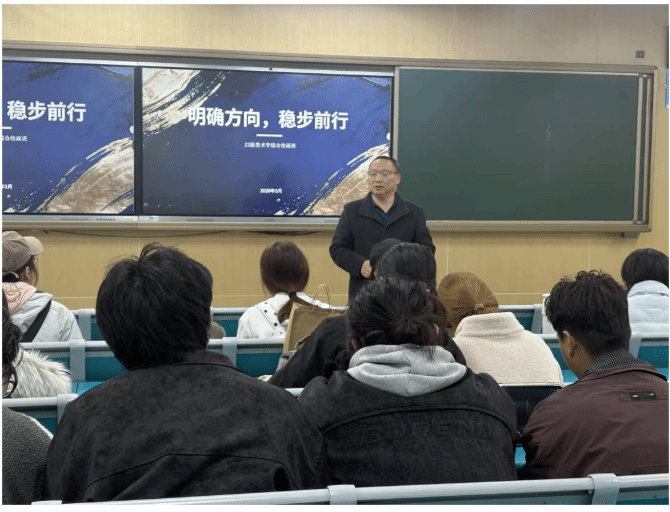 为进一步明确学生发展方向,解决学业与职业规划困惑,筑牢成长发展根基,2026年3月,美术学院2023级7个专业班在班主任、专任教师及辅导员老师的指导下,结合各专业特色陆续开展主题班会活动。各班紧扣大三下学期学生的核心需求,围绕实习准备、升学就业规划、专业发展等关键问题展开交流探讨,为同学们的成长前行指明方向。