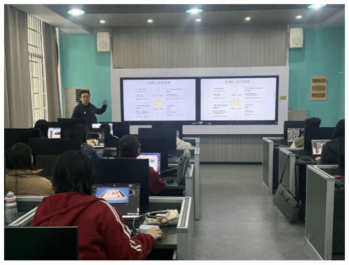 李子健老师结合“ESBI人生四象限”展开讲解,从员工、自由职业者、企业主、投资者四种发展路径出发,引导同学们重新思考职业选择与成长方式,让大家直观认识到不同方向对应的工作逻辑、收入来源与能力要求。同时,李老师结合相关图表分析当前发展环境与社会现状,提醒同学们大三下学期是主动规划的关键阶段,需尽早明确目标、提升专业能力与综合素养。班会最后,陈颖嘉老师分析往届数字媒体艺术专业毕业就业去向,为同学们的升学、就业、留学、考公考编选择提供详实参考。