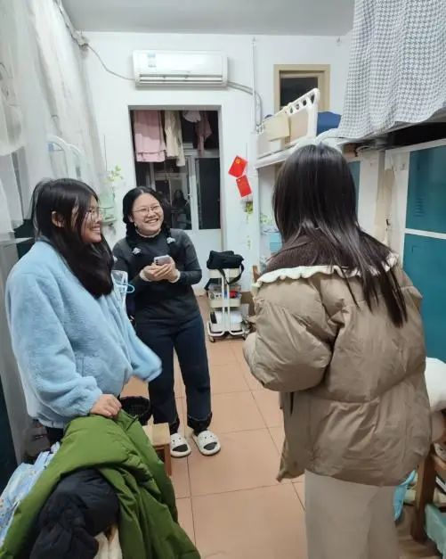 此外,辅导员孙宇老师和王馨婕老师开展寝室走访活动。重点排查同学们的归宿情况,并强调了宿舍用电安全,与应到校但还未返校的学生一一确认联系。针对即将毕业的研三同学,两位老师以一对一形式详细了解每位同学的职业规划和求职进展,并提供了个性化的建议。