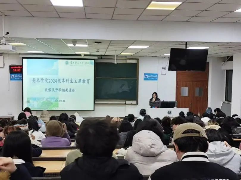 2月19日,全体研究生在美院一楼报告厅召开“灵蛇启岁新学期、奋斗前行正当时”主题班会。
