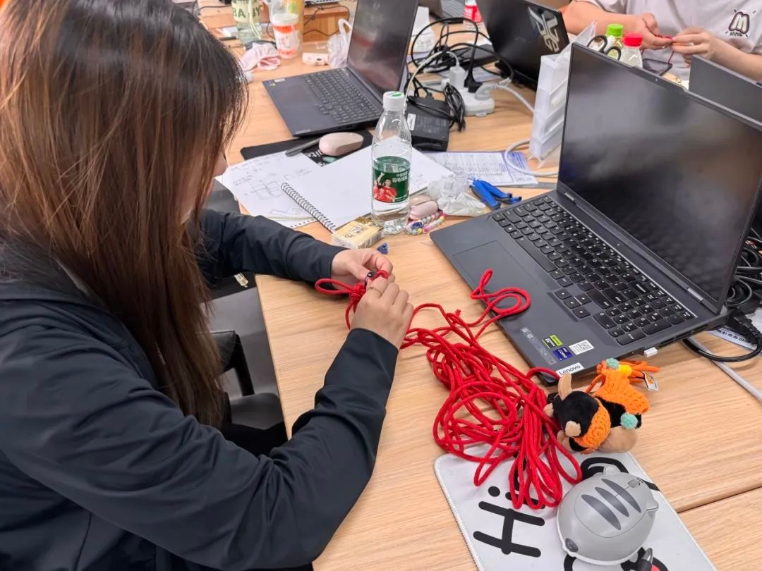 有同学表示:“编错时很焦躁,但拆开重来的过程,反而像在给自己‘解压’。”赵晨茜分享:编绳是一种“正念手工”,通过重复动作让大脑进入专注状态,类似“动态冥想”。当注意力集中在指尖,负面情绪会随绳结的规律性动作被悄然释放。