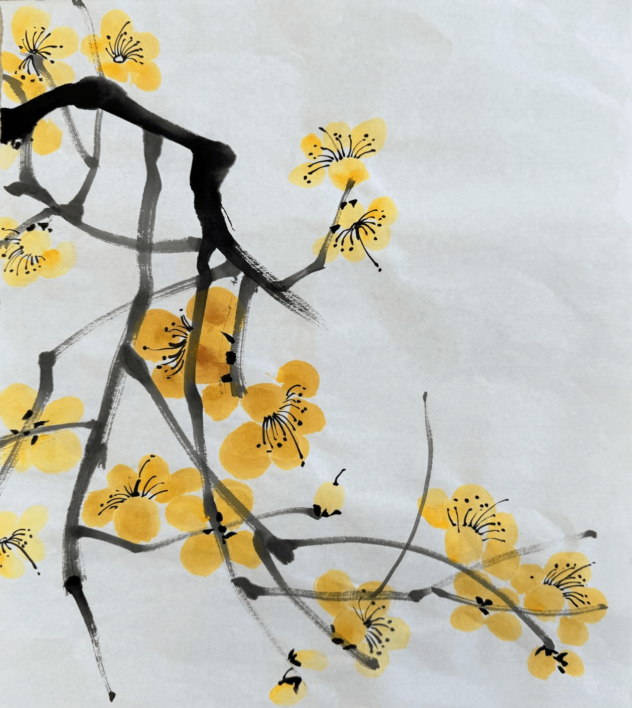 胡同学将比赛失利的“黑点”绘为梅枝花苞,分享道: