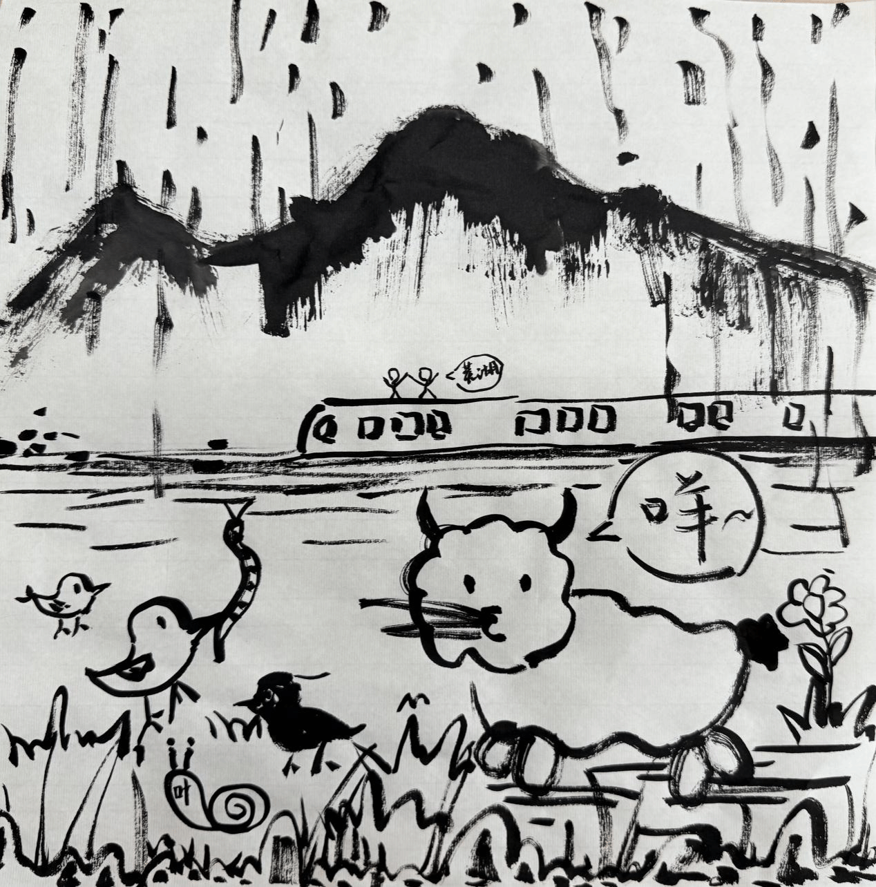 理论浸润后,同学们以“墨点种子的绽放”为主题进行自由创作。每人先在宣纸上点下一处“黑点”,象征曾令自己遗憾的“瑕疵”,再通过花鸟画技法将其延展为完整作品。创作中,墨点化作枝头新芽、山石苔痕,甚至荷叶间的露珠。
