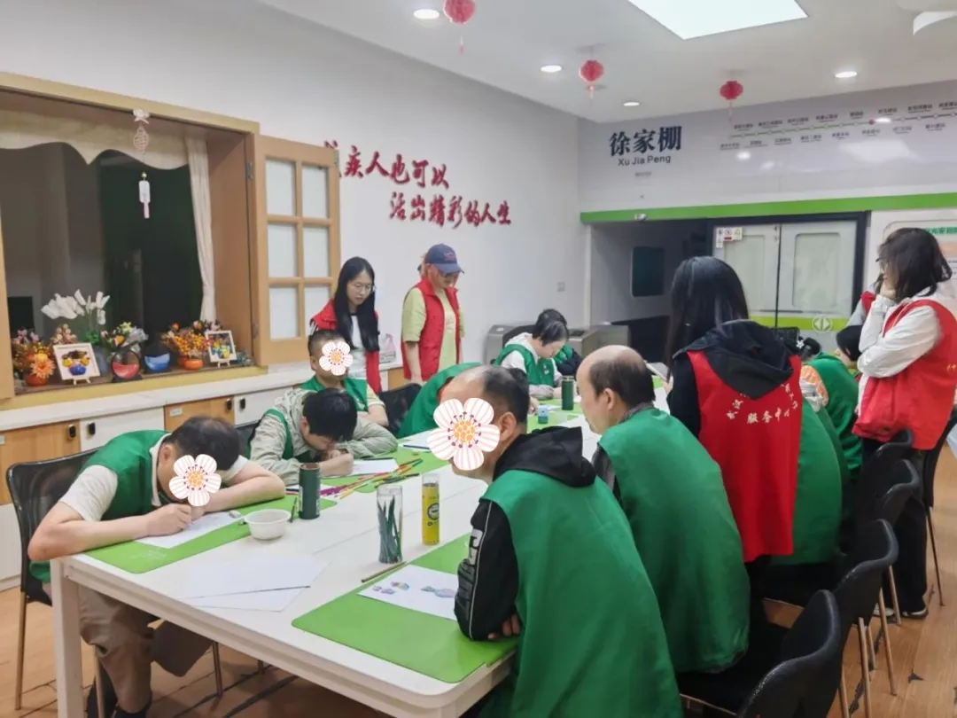 华中师范大学美育服务队的成员为徐家棚阳光家园的学员们带来了一场别开生面且意义深远的绘画志愿活动。本次活动以“五一”国际劳动节为契机,以“用植物盆栽迎接五一,传递温暖”为主题,志愿者与学员们携手同行,以艺术之名,为特殊群体送去爱与希望。