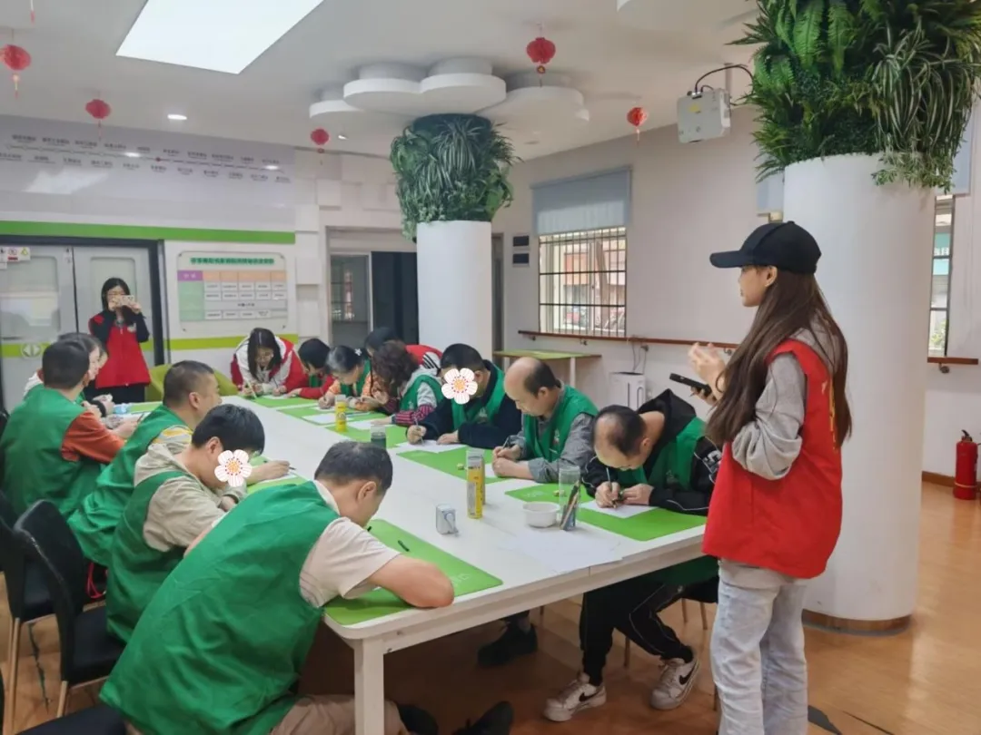 志愿者们早早备好讲解的内容和植物盆栽的绘画演示过程。活动开始,在志愿者鼓励下,学员们都积极拿起画笔,志愿者们耐心地为学员们讲解绘画技巧,志愿者们从色彩的搭配到线条的运用,都进行了细致入微的指导。学员们充分发挥想象力,有的在盆栽上画出了阳光照耀下的花园,花朵鲜艳夺目;有的描绘了绿意盎然的森林,树木生机勃勃。这些充满创意的画作,每一笔都倾注着他们对生活的热爱,每一幅都承载着他们对未来的美好向往。