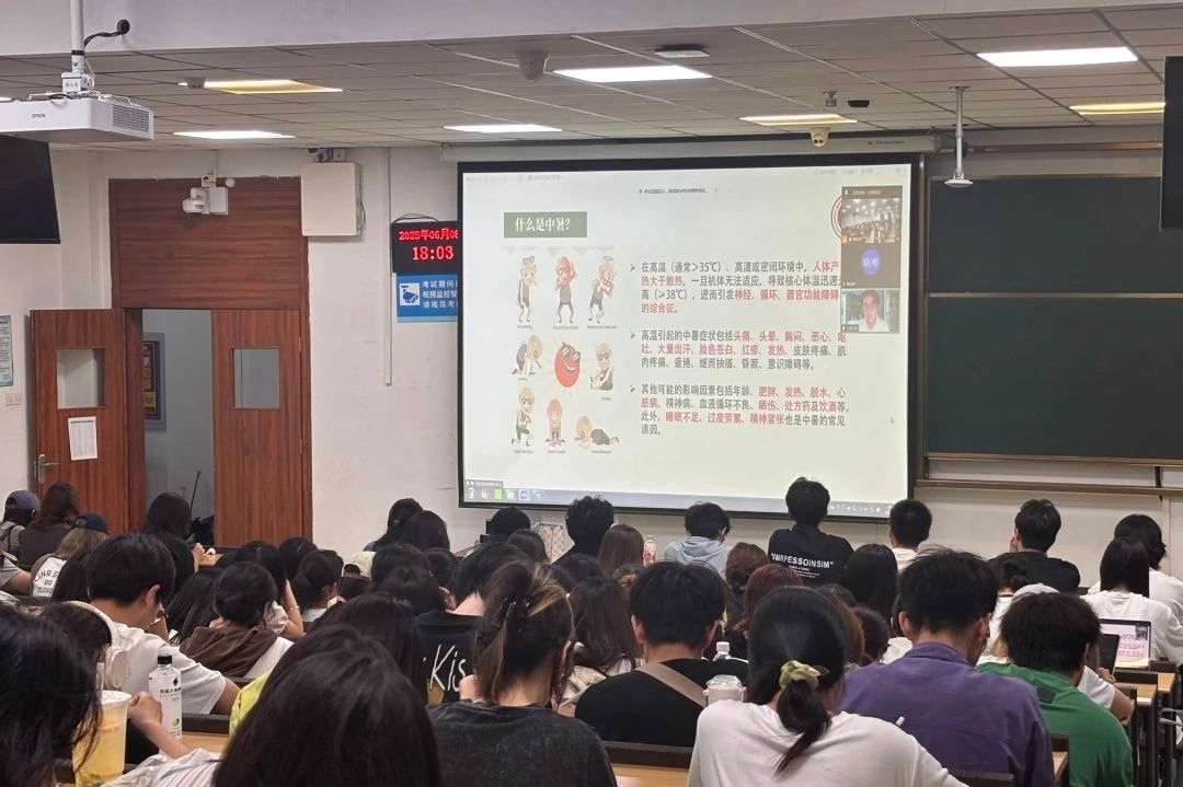 活动特别邀请了北京中医药大学东直门医院中医内科学硕士研究生王杨致远主讲,他长期专注于中医内科研究,为同学们带来了专业且实用的中暑防治及防蚊虫知识。