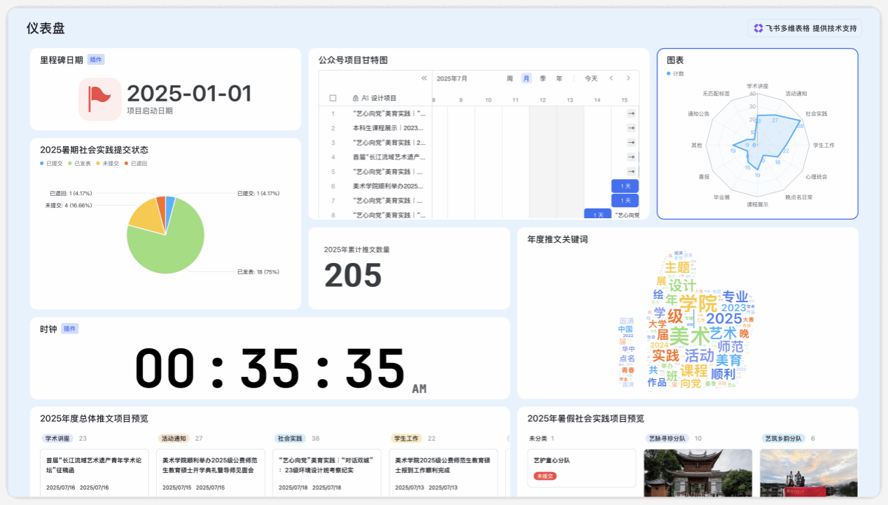 负责构建、维护与优化宣传中心的数字化资源库,运用飞书多维表格、百度网盘企业版等高效工具,实现海量素材(文稿、图片、视频、设计源文件、活动资料)的系统化归档、精准分类与便捷检索。
